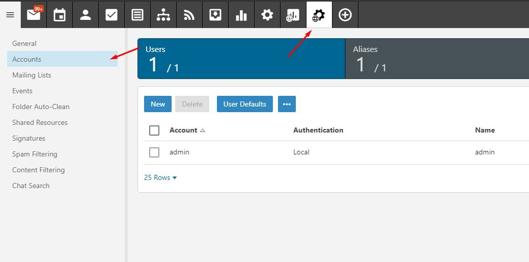 – Đầu tiên, bạn truy cập vào webmail quản lý dịch vụ của mình (có dạng webmail.domain.com), bạn truy cập vào tài khoản có quyền quản trị cao nhất và tìm đến Domain Setings, chọn đến Accounts.