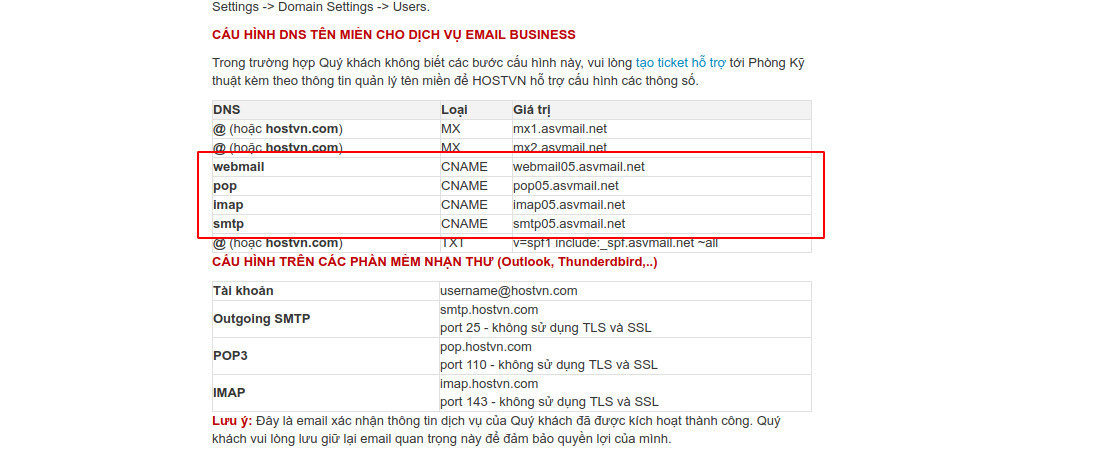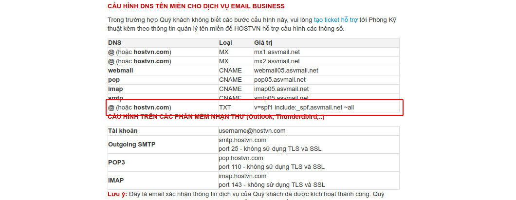 Sau khi bạn đăng ký thành công dịch vụ Email Business bạn sẽ nhận được Email có chứa các thông tin cần thiết để cấu hình DNS.