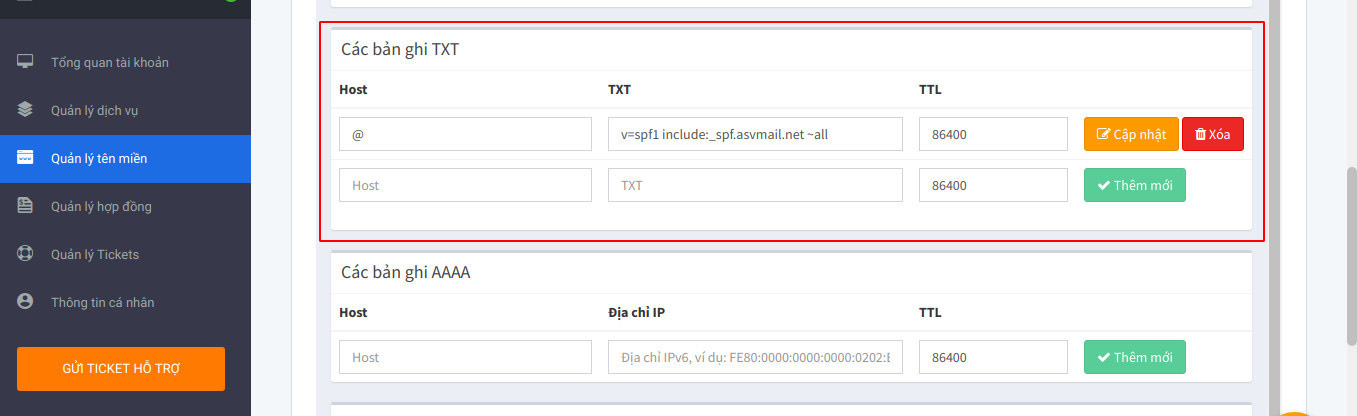 Sau khi tạo đầy đủ các bản ghi, bạn cần chờ từ 30p – 24h để DNS cập nhật đầy đủ các bản ghi. Nếu bạn sử dụng tên miền ở các nhà cung cấp khác, hãy tạo các bản ghi tương tự như trên hoặc liên hệ với nhà cung cấp tên miền của bạn để được hỗ trợ thiết lập các bản ghi.