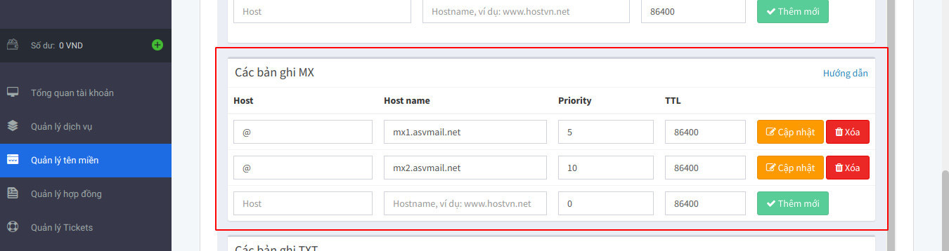 3. Tạo 2 bản ghi MX