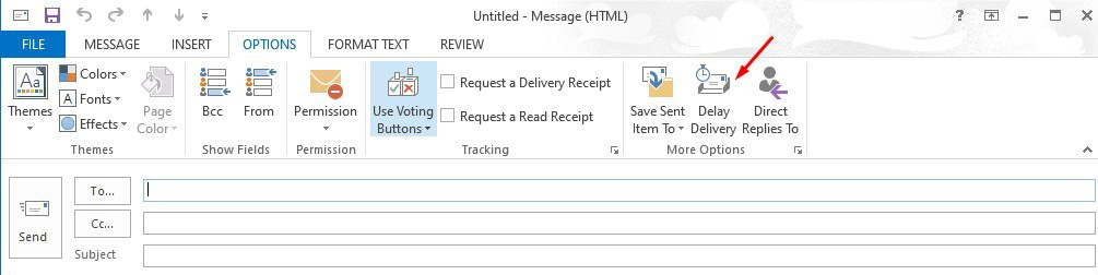– Tại Email mới được mở ra, tìm đến Delay Delivery để thiết lập giờ gửi cho email của bạn.