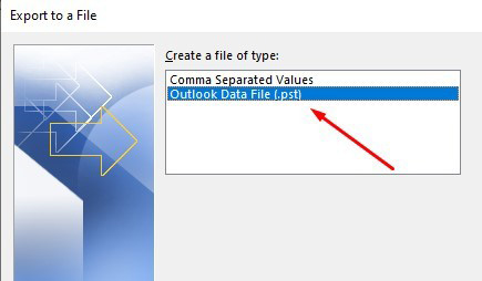 – Chọn định dạng file cần sao lưu, ở đây là .pst