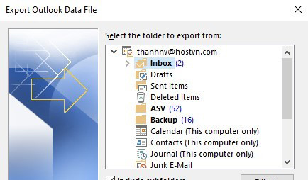 Cách 1: Sao lưu mail thủ công trong Outlook
