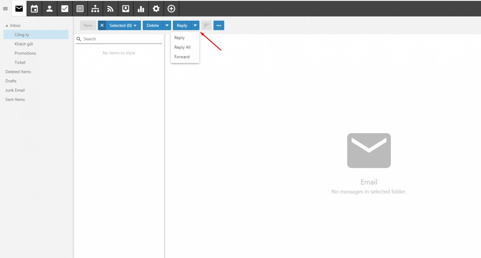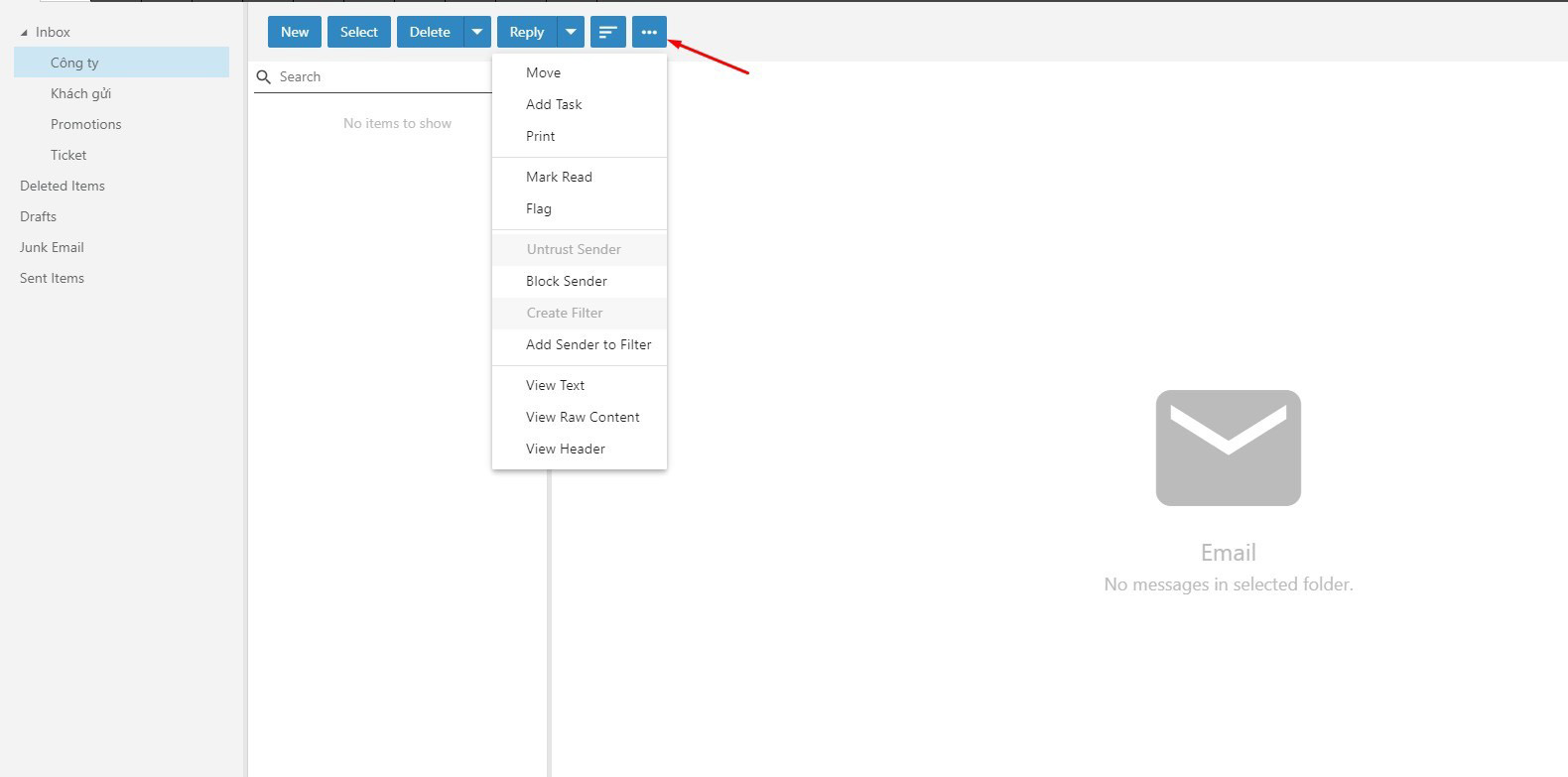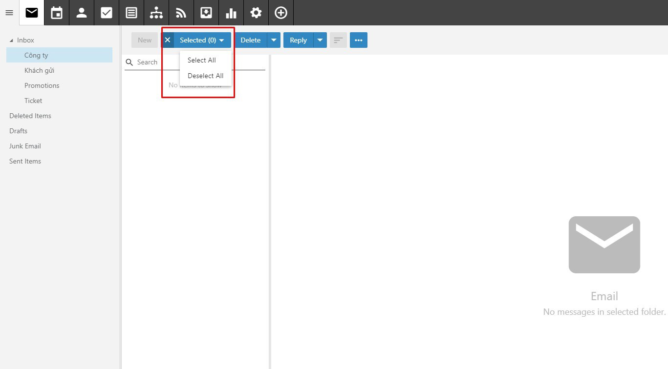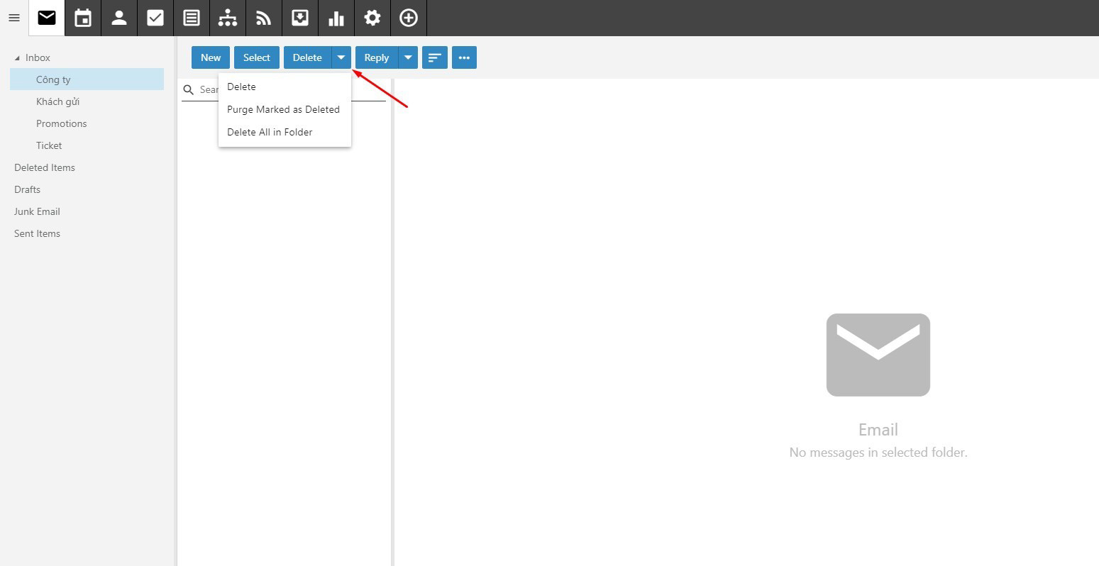 - Delete All in Folder: Xóa toàn bộ mail trong thư mục hiện tại