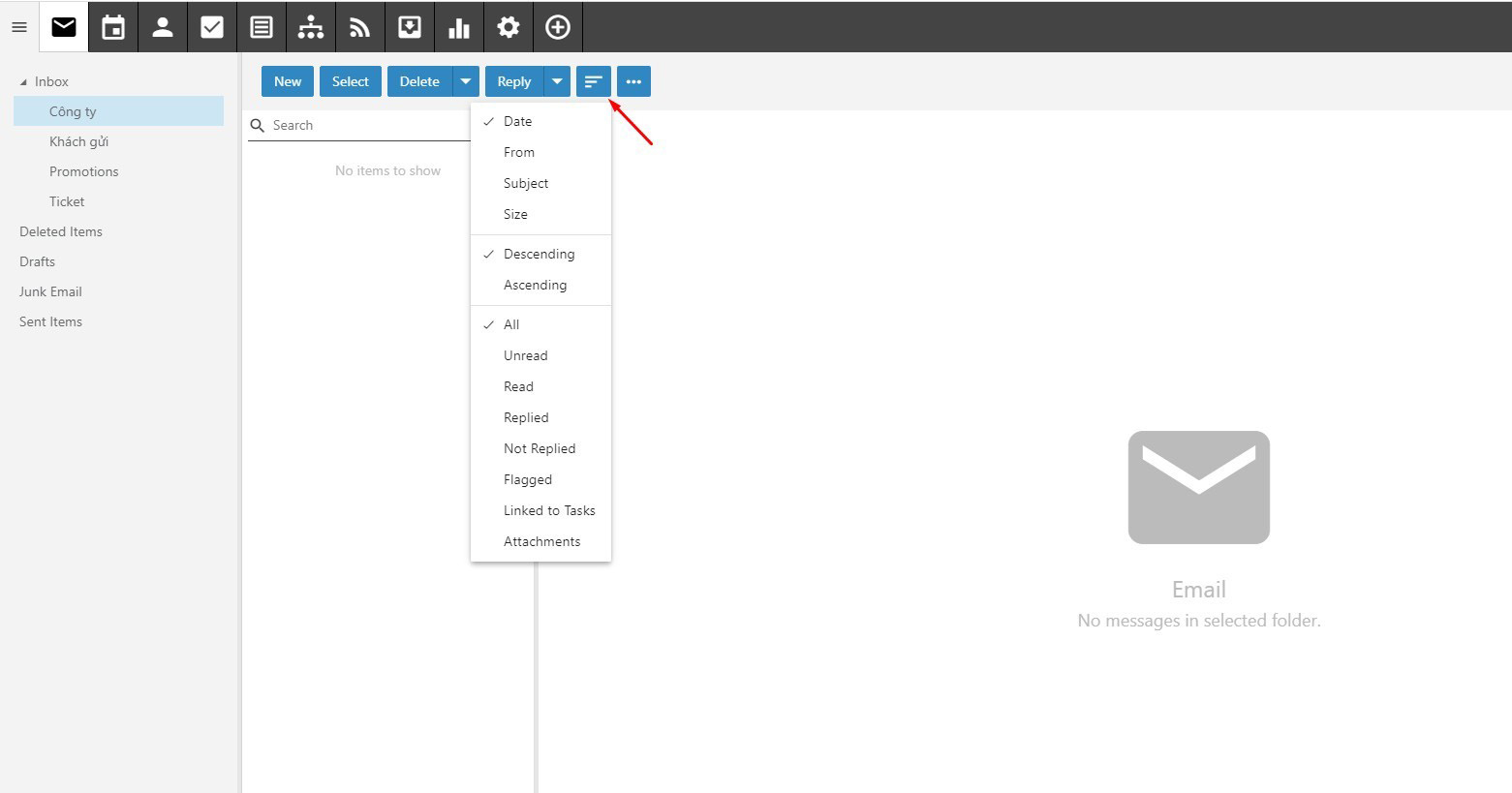 - Size : Sắp xếp theo kích thước mail