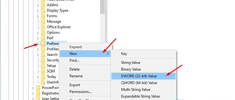 Sau đó, bạn chuột phải vào Preferences và chọn New > DWORD (32-bit) Value