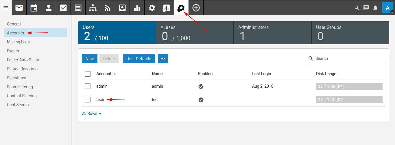 Mặc định, các User được khởi tạo sẽ có dung lượng là 1000MB – tương đương với 1GB. Để thay đổi giá trị mặc định này, các bạn tham khảo bài viết hướng dẫn dưới đây: