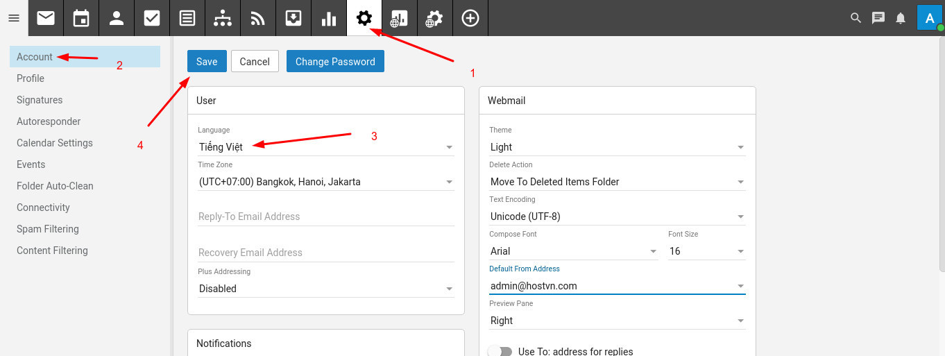 Mặc định ngôn ngữ hiển thị sẽ là Tiếng Anh, để có thể chuyển ngôn ngữ hiển thị sang Tiếng Việt các bạn có thể làm theo hướng dẫn dưới đây