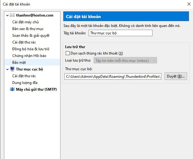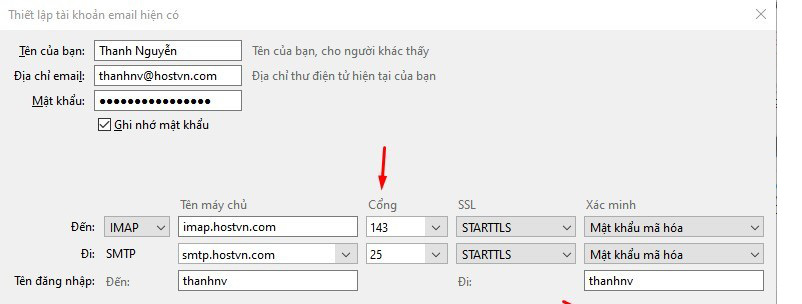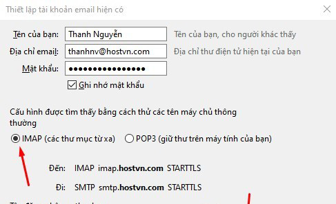 – Thunderbird sẽ tự động thiết lập giúp bạn, tại đây bạn chọn IMAP và nhấn Xong.