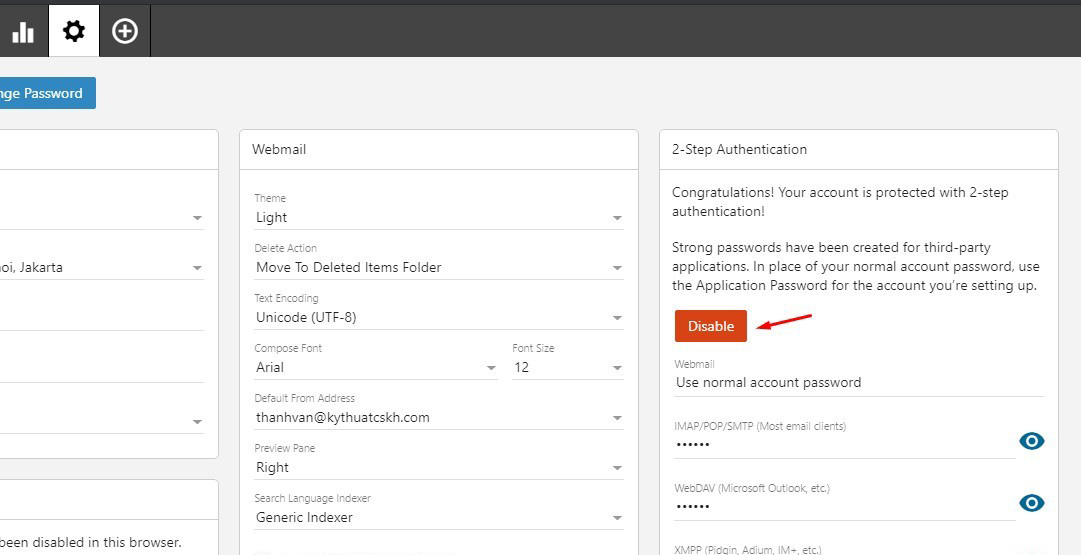 – Hoàn tất, từ giờ khi bạn đăng nhập vào webmail, sẽ có thêm 1 bước nhập mã xác thực được gửi đến email bạn đăng ký nhận mã xác thực.