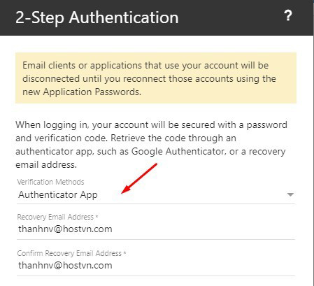 – Tại cửa sổ 2-Step Authentication, bạn chọn xác thực bằng Authenticator App